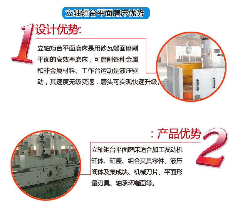 立轴矩台平面磨床是用砂瓦端面磨削平面的高效率磨床,可磨削各种金属和非金属材料;工作台运动是液压驱动其速度无级变速;磨头可实现快速升级;磨头电机采用风冷方式拖板与立柱的结合方 ...