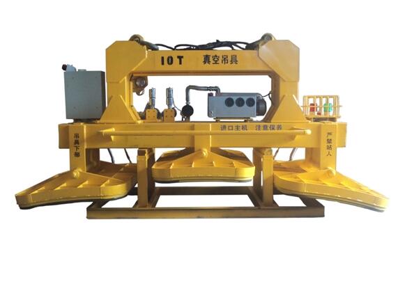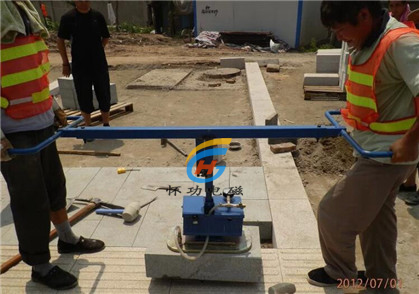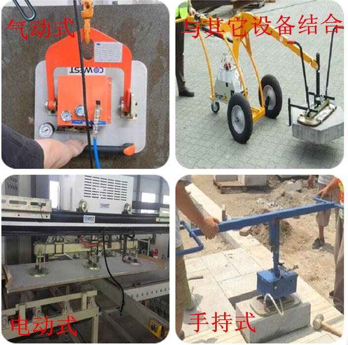 一、半自动电驱动式石材脱模真空吊具 (它是以真空泵为动力源;当真空搬运吊具与石材模板接触时,形成一个密闭的容器,以电动真空泵不断工作抽取真空吊具设备系统内的空气,形成负压从而吸附住板材,再利用电动葫芦等提升系统,将板材与模具剥离)