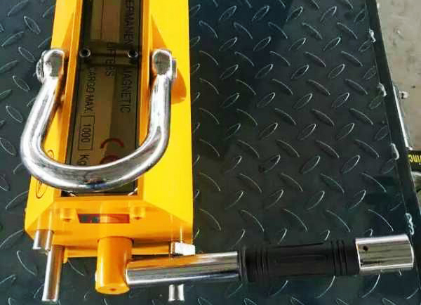 标准永磁起重器吊运时,先将被起吊工件表面清理干净,如有锈皮和凸刺应清理;永磁起重器的中心线最好与工件重心线重合,然后将起重器放置在工作平面上,旋转手柄由-号位置,向+号方向旋转至限 ...