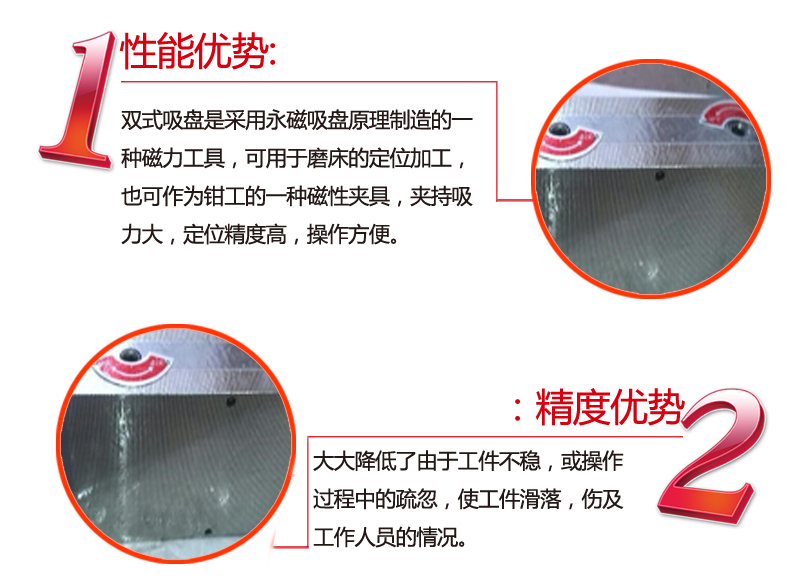 1、因双面式永磁吸盘各家产品定制规格不同,产品大小形状各有差异,产品以实物为准。